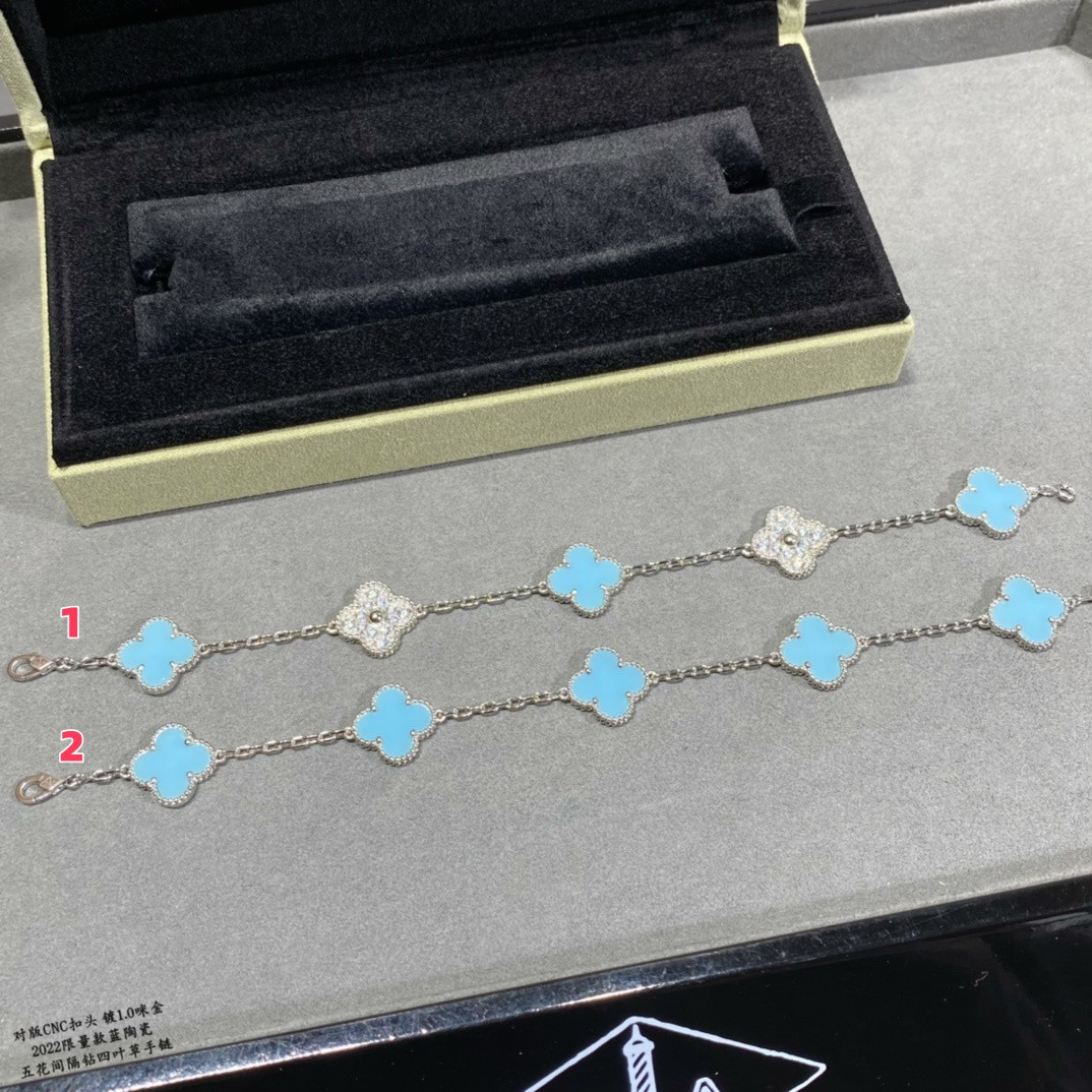v*n cl*f & arpels turquoise interval Di*m*nd five-flower four-leaf clover bracelet
